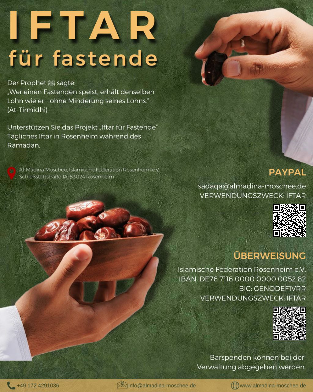 Unsere Moschee verfügt über keine festen Einnahmequellen und wird vollständig durch Spenden finanziert. Mit Ihrer monatlichen Unterstützung tragen Sie dazu bei, dass Miete, Nebenkosten, Unterricht und Gemeinschaftsprojekte zuverlässig gedeckt werden.