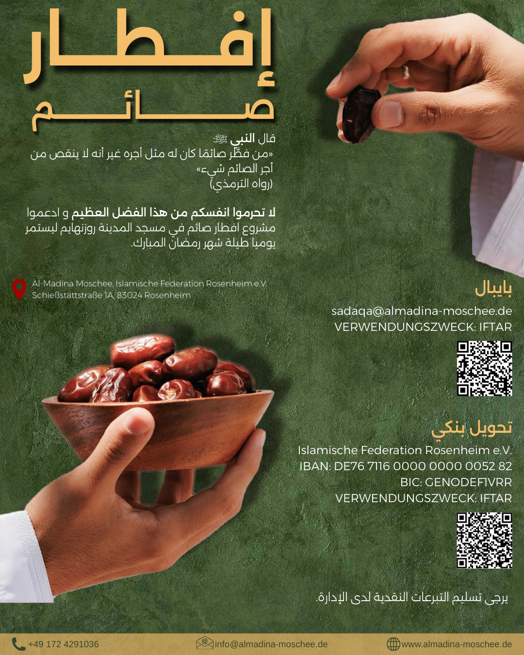 Montag bis Freitag: 9:00 bis 16:00 Uhr - info@almadina-moschee.de